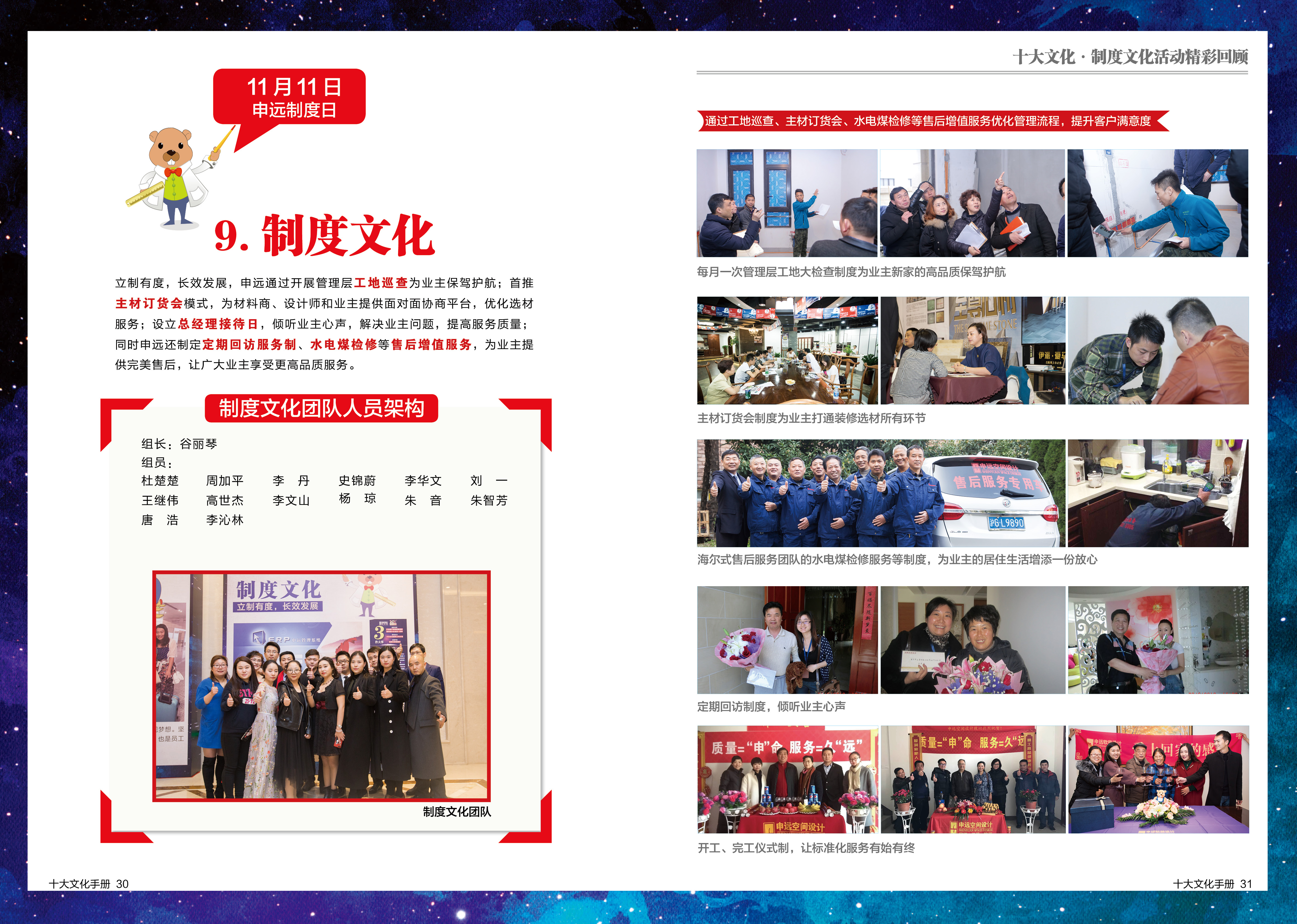 立制有度,长效发展,申远通过开展管理层工地巡查为业主保驾护航;首推主材订货会模式,为材料商、设计师和业主提供面对面协商平台,优化选材服务;设立总经理接待日,倾听业主心声,解决业主问题,提高服务质量;同时申远还制定定期回访服务制、水电煤检修等售后增值服务,为业主提供完美售后,让广大业主享受更高品质服务。