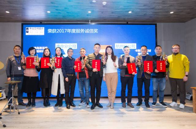 斩获2017服务诚信奖的材料合作商上台领奖