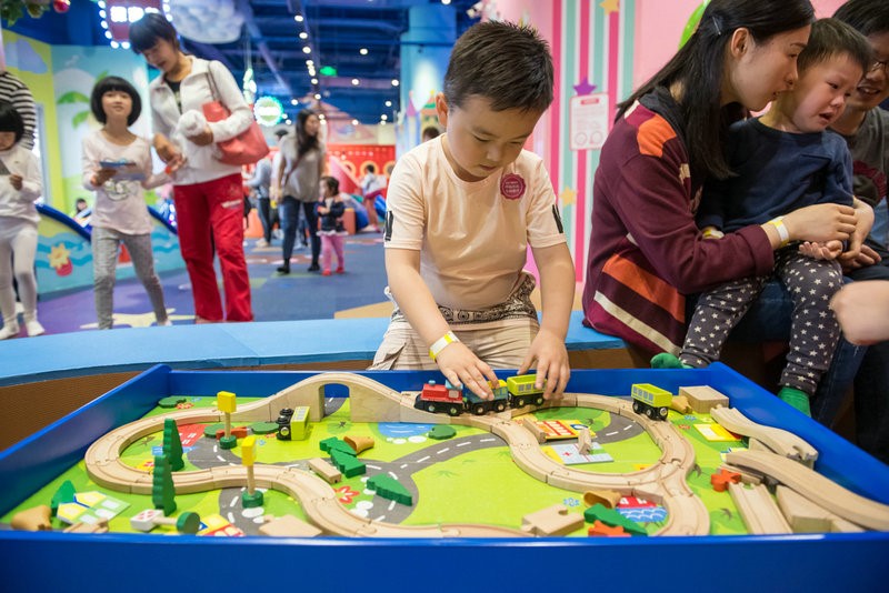 孩子们在巧虎欢乐岛内游玩,家长们陪同在旁,从嬉戏中感知和学习,从中获得乐趣与自信。