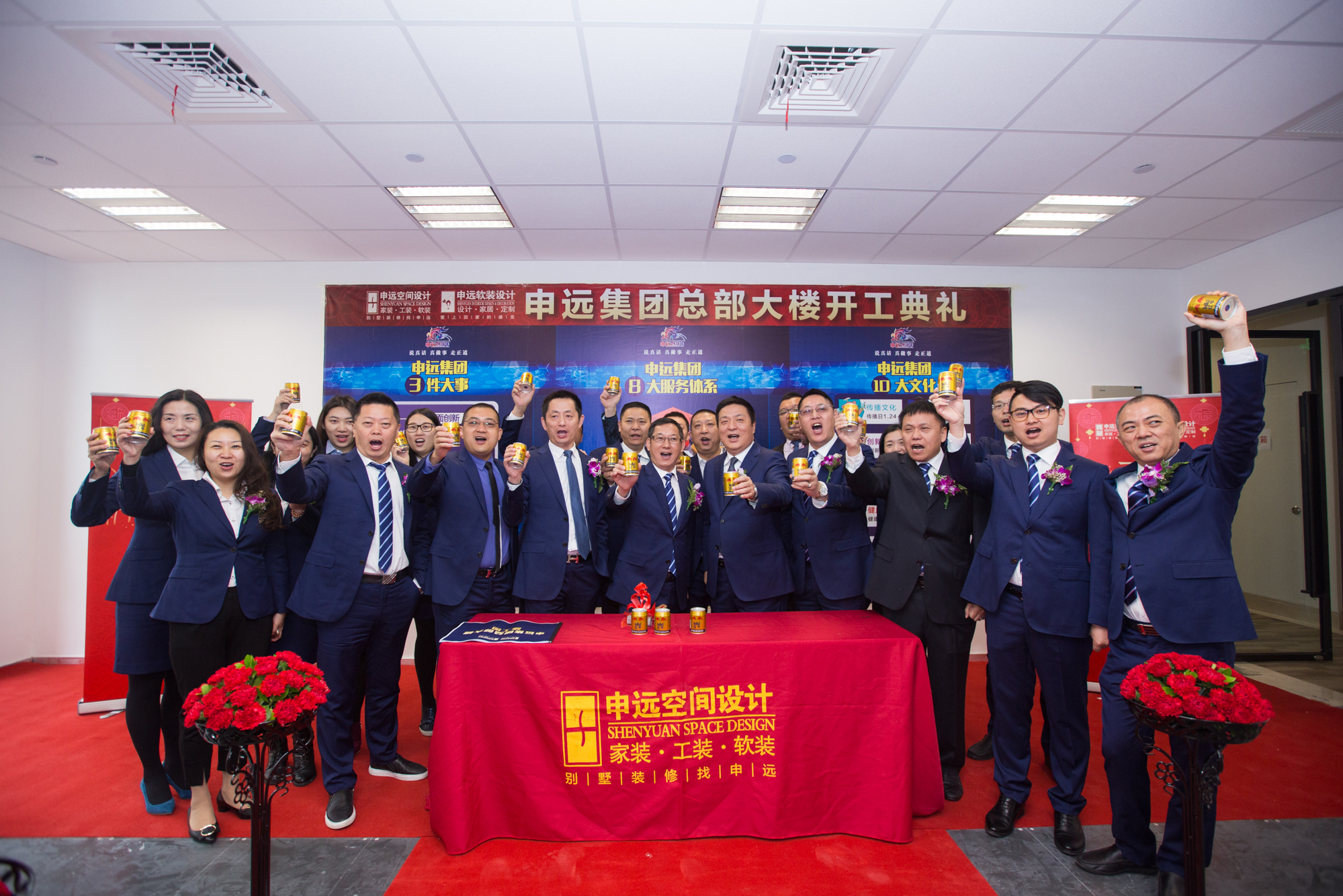 举杯庆祝开工仪式圆满成功,共同期待申远集团总部大楼揭开面纱
