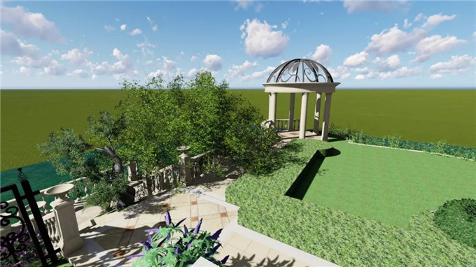 设计说明:花园总体为法式风格,意大利台地园为主要思路,营造了一种度假式的浪漫归家体验。