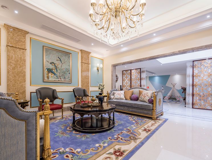 女主人比较年轻时尚,非常信任设计师,所以用色大胆,无论是客厅还是其他公共空间,设计师运用的色彩都是极其年轻时尚,贴合业主的喜好以及心态。