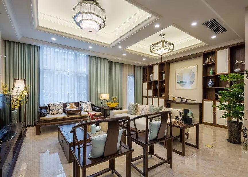 经过叶子之手,没想到新中式还能如此温柔,薄荷绿的窗帘让整个空间变得温馨又有色彩,清新纯白色柔和了温润木质的特色,展现出简约纯粹的生活质感,摆放着业主收藏的各种中式玩件。体现业主的对传统文化的喜爱。