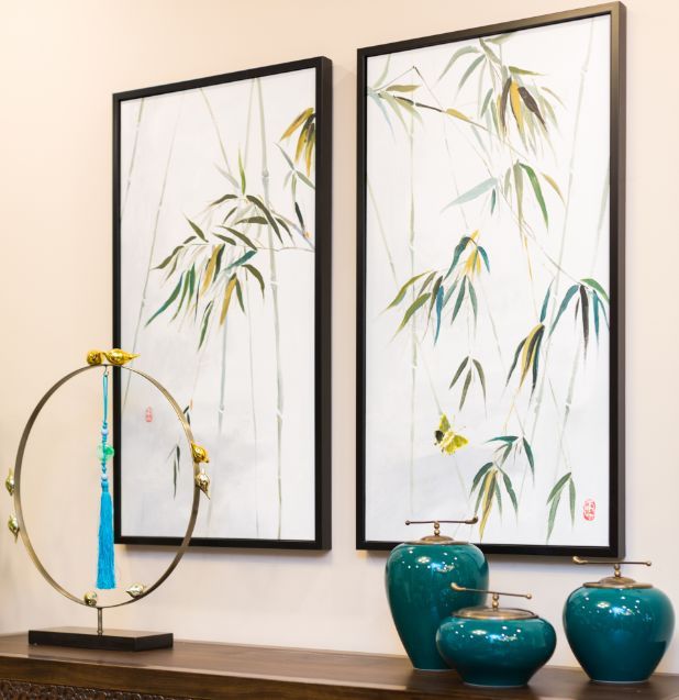 设计师在软装的空间里用的比较多的是花鸟图,因为花鸟画不仅象征着福、禄、寿、喜、财五个财位,而且还能活跃室内氛围,美化家居环境。