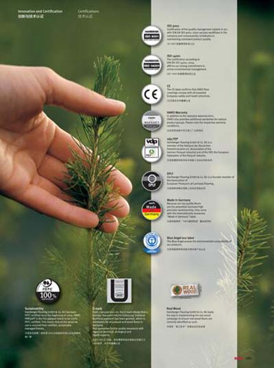 德国汉诺地板作为诸多著名国际协会组织的发起者或重要组织成员,其产品所需各种认证应有尽有。