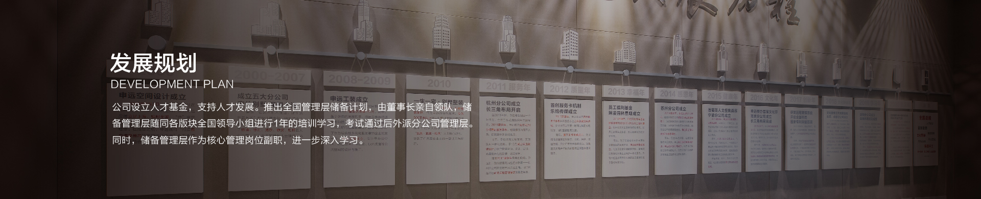 从管理层选拔,到员工综合能力的培养,再到企业文化的构建及落地,都离不开人才的建设。公司设立人才基金,支持人才发展。推出全国管理层储备计划,由董事长亲自领队,储备管理层随同各版块全国领导小组进行1年的培训学习,考试通过后外派分公司管理层。同时,储备管理层作为核心管理岗位副职,进一步深入学习。从企业文化价值观、专业知识学习到各版块轮岗实践,多维度培养为布局全国输送人才。